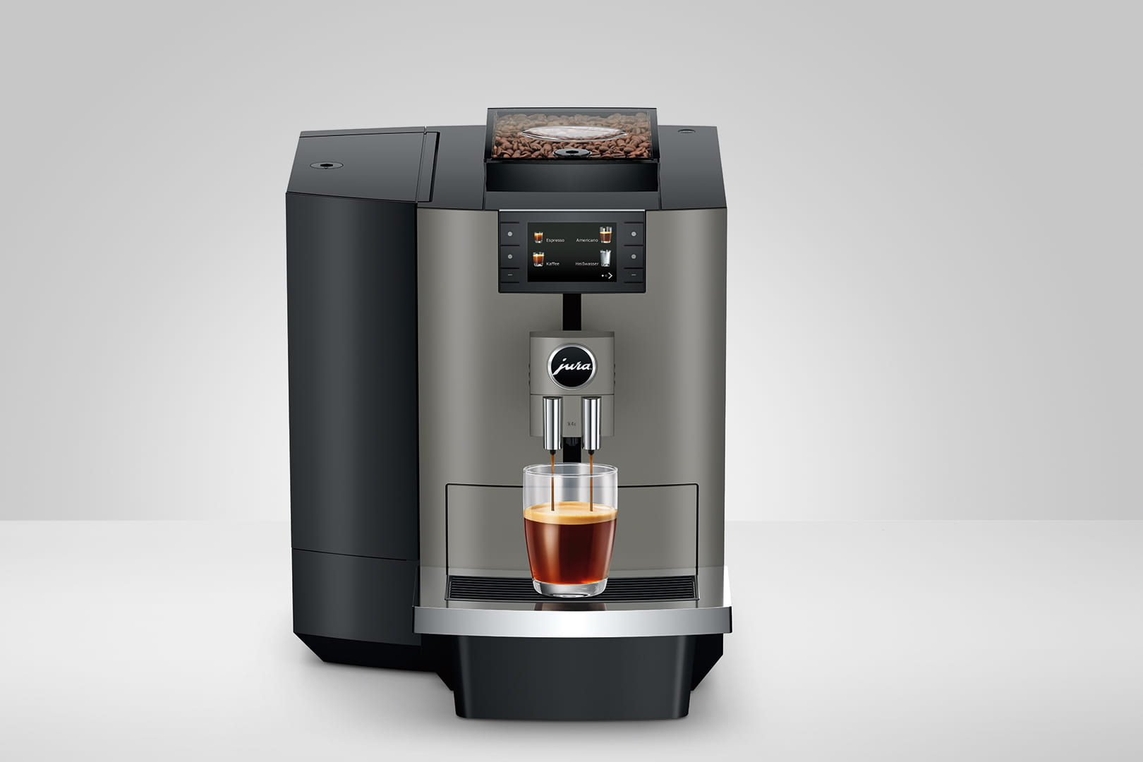 The X4c impresses with twice the professionalism, as it takes account of the needs of operators and coffee drinkers alike. With a 3.5-inch display and six one-touch buttons, it ensures practical access to the world of indulgence. On the operating side, it impresses with its configuration and locking options. Thanks to the lockable water tank and bean container, it is protected against external influences and offers easy handling in daily use with ergonomically designed components, such as the drip tray and coffee grounds container.